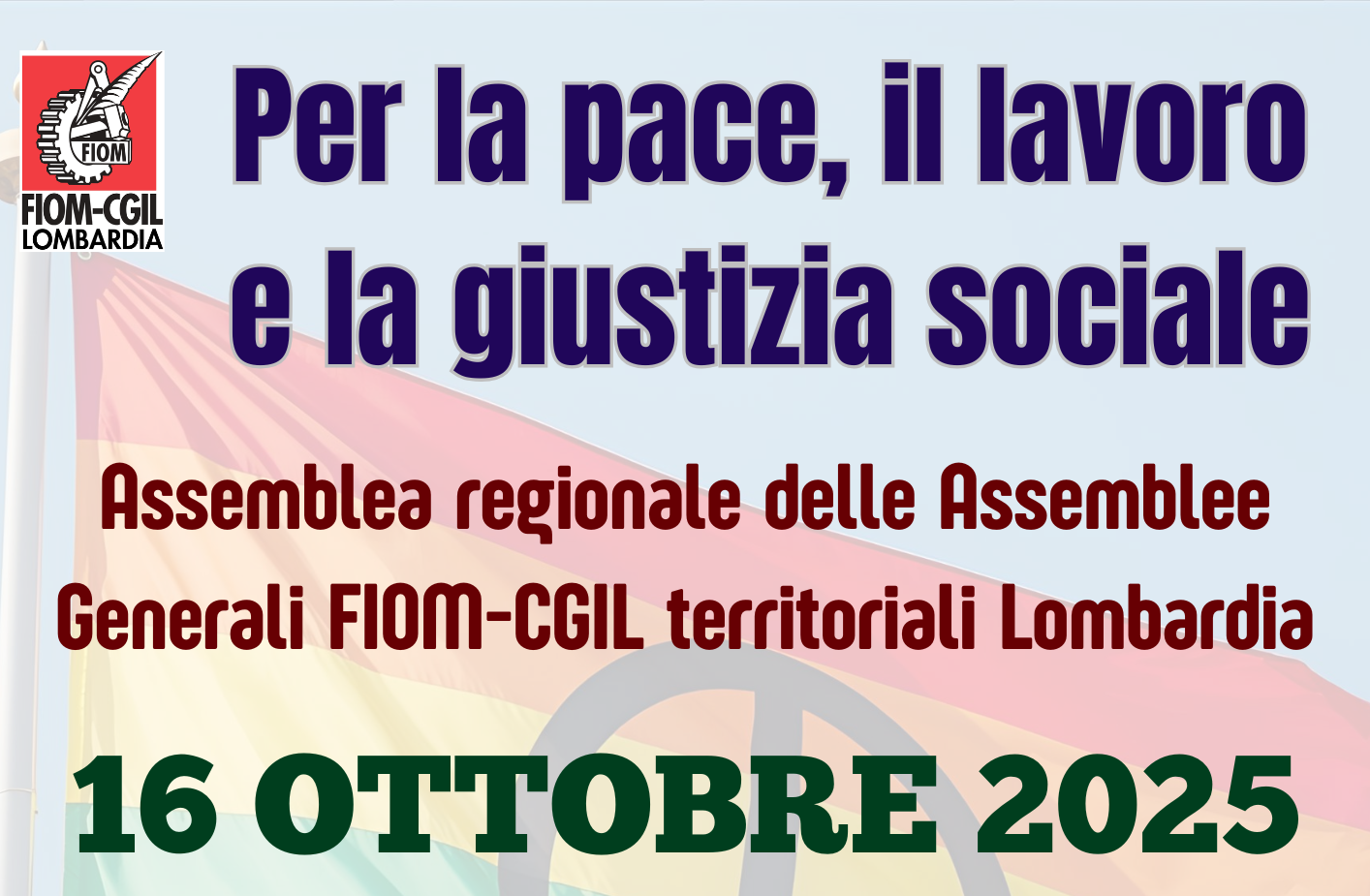 Si terrà mercoledì 16 ottobre al Brixia Forum di Brescia l’Assemblea delle Assemblee Generali FIOM-CGIL Lombardia, un importante momento di confronto e mobilitazione per il settore metalmeccanico.